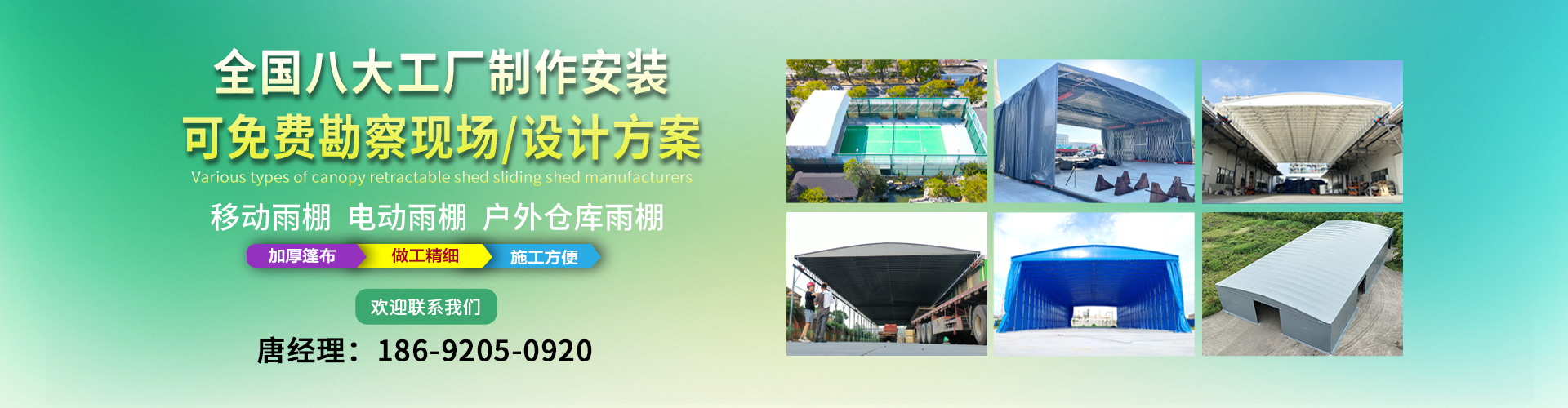 湖南鑫建華鋼結構工程有限公司是一家電動雨棚、膜結構車棚研發,生產銷售,施工安裝于一體的專業鋼結構科技公司,主要產品有伸縮雨棚,電動雨棚,膜結構車棚等。 湖南地區職員目前有200多人,自建廠房15600平方米,配備先進的生產流水線,使每件品質產品的堅實基礎。 公司在衡陽,蘇州,天津,濟南,鄭州,江門,佛山,武漢,重慶均設有服務工廠,擁有專業的技術團隊,配備先進的設備和流水線生產,產能高,貨源充足,發貨速度快,服務區域廣。 移動伸縮棚適用于通道臨時倉儲、戶外運動遮陽、污水池遮蓋、能源交通、熱力化工、礦山、船舶制造及市政建設、物流、碼頭等領域的構件制作加工,成品半成品存放、倉庫、野外儀器設備操作用房等。尤其是對工廠發貨、倉儲臨時遮雨防嗮,梅雨期較長、建設周期較短的工程施工等特別適用。還可根據用戶需求量身定制、適合企業所需不同款式的產品。 我公司堅持“誠信社會為本,客戶滿意為榮”的經營理念,做到質量把控,嚴格管理,精益求精,恪守承諾。使鑫建華逐步走向成熟,其系統化、專業化日趨完善。以專業的技術、科學的管理,更高的產品質量,優良的企業信譽,真誠的客戶服務,靈活多樣的經營方式和務實創新的企業精神愿與社會各界攜手合作,為推動智能鋼結構建筑事業的發展而不斷努力。...
